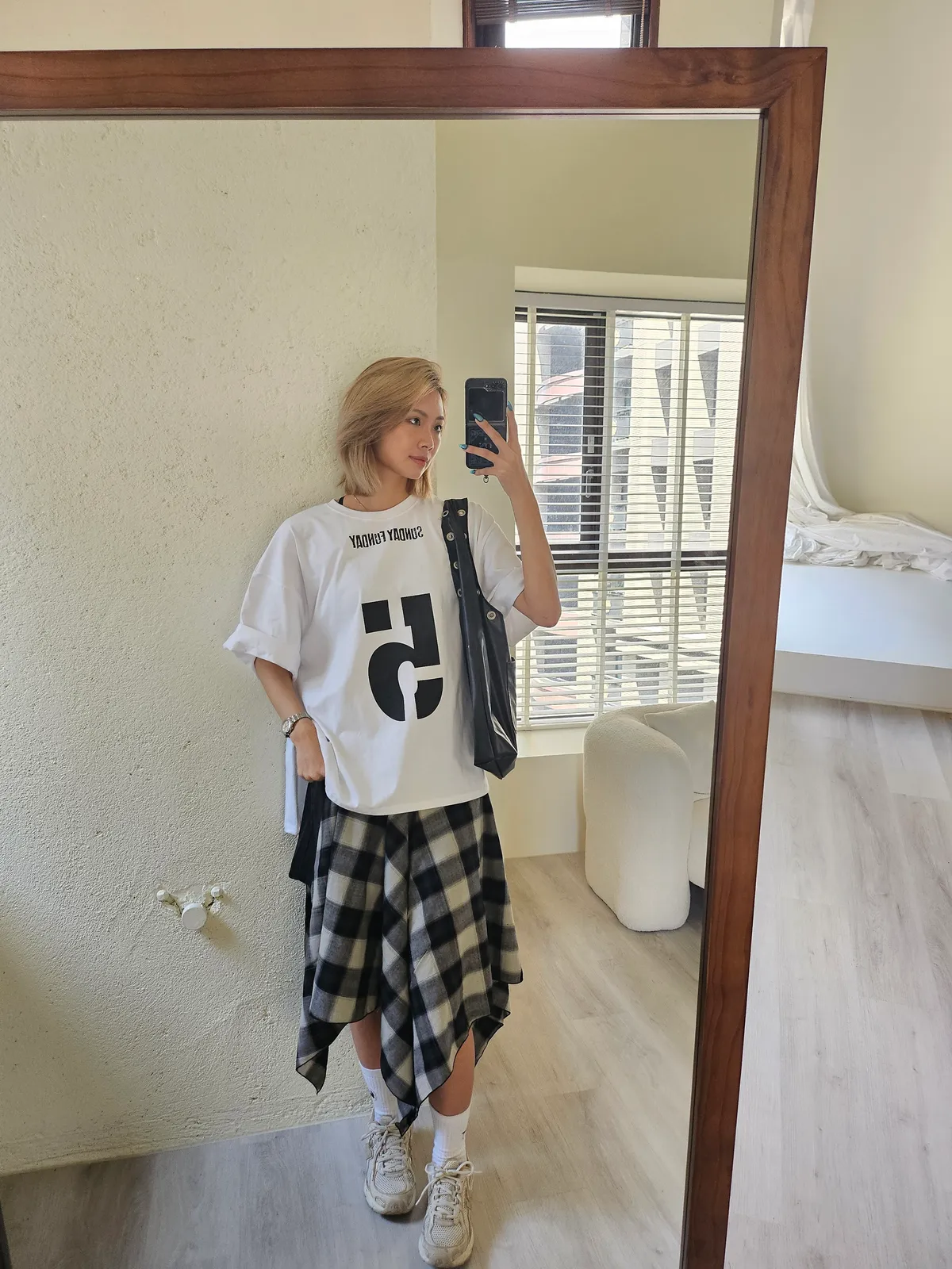 Shadow Check Skirt|影格不規則裙擺