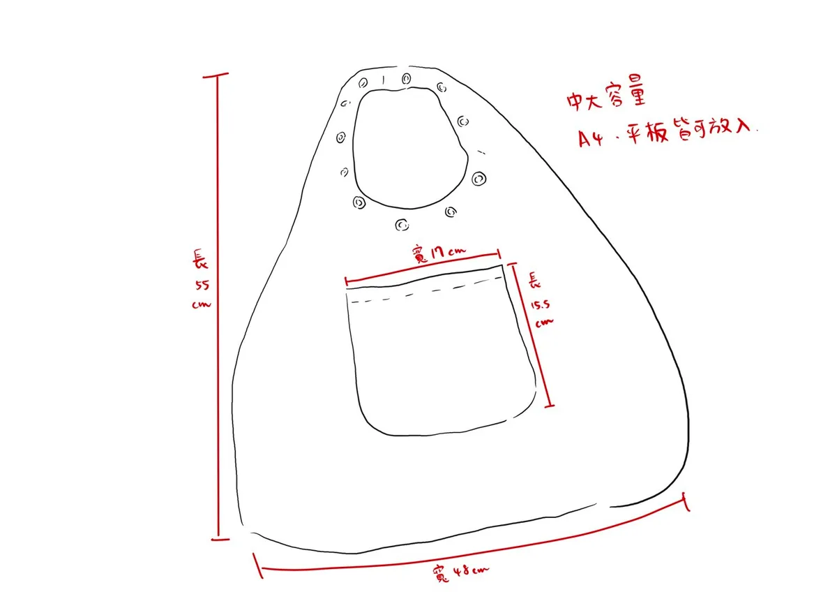 | 尺寸(cm) | 全長 | 寬 | 前口袋長 | 前口袋寬 |