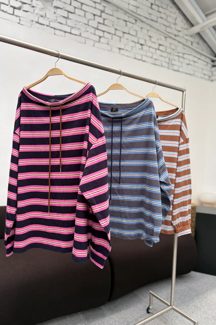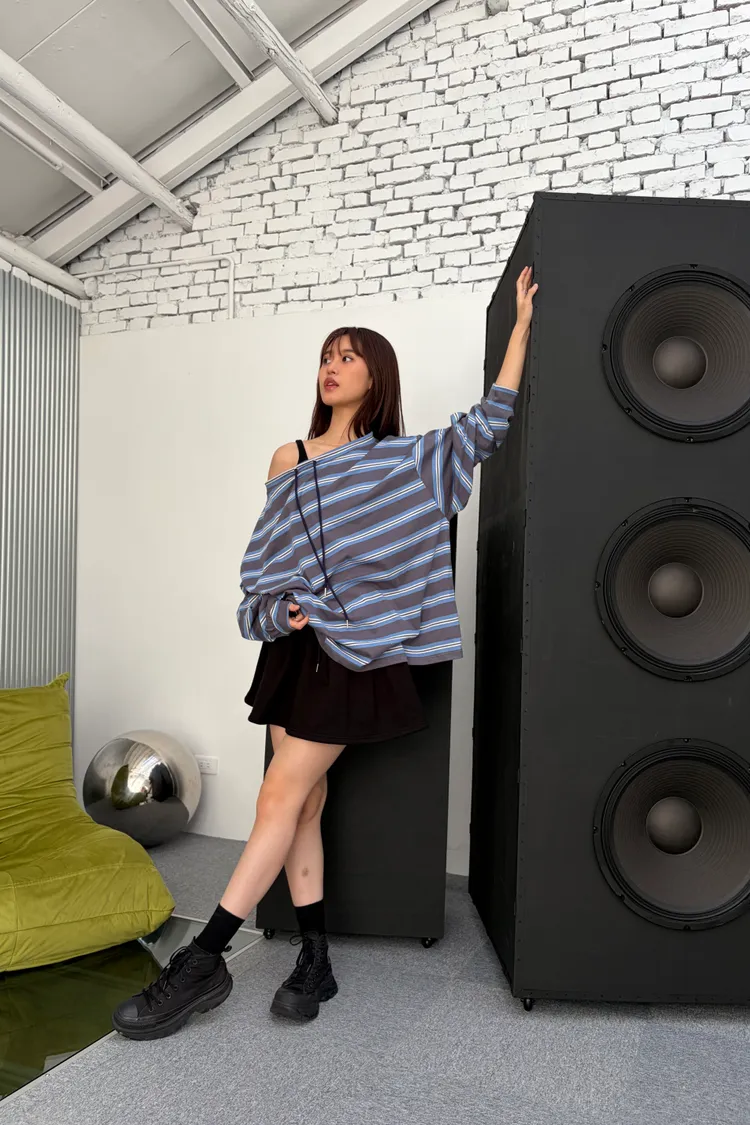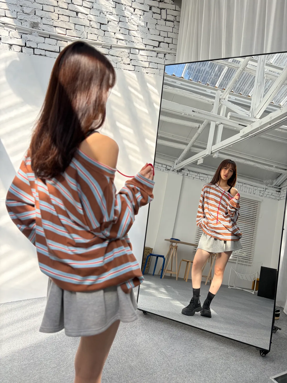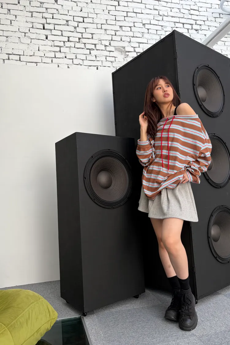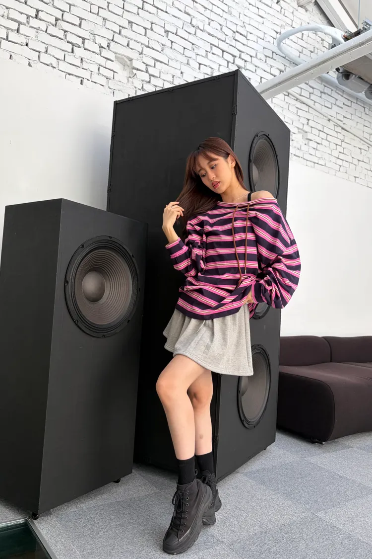 這件上衣以寬鬆落肩 × 不規則下擺打造自然鬆弛感,
