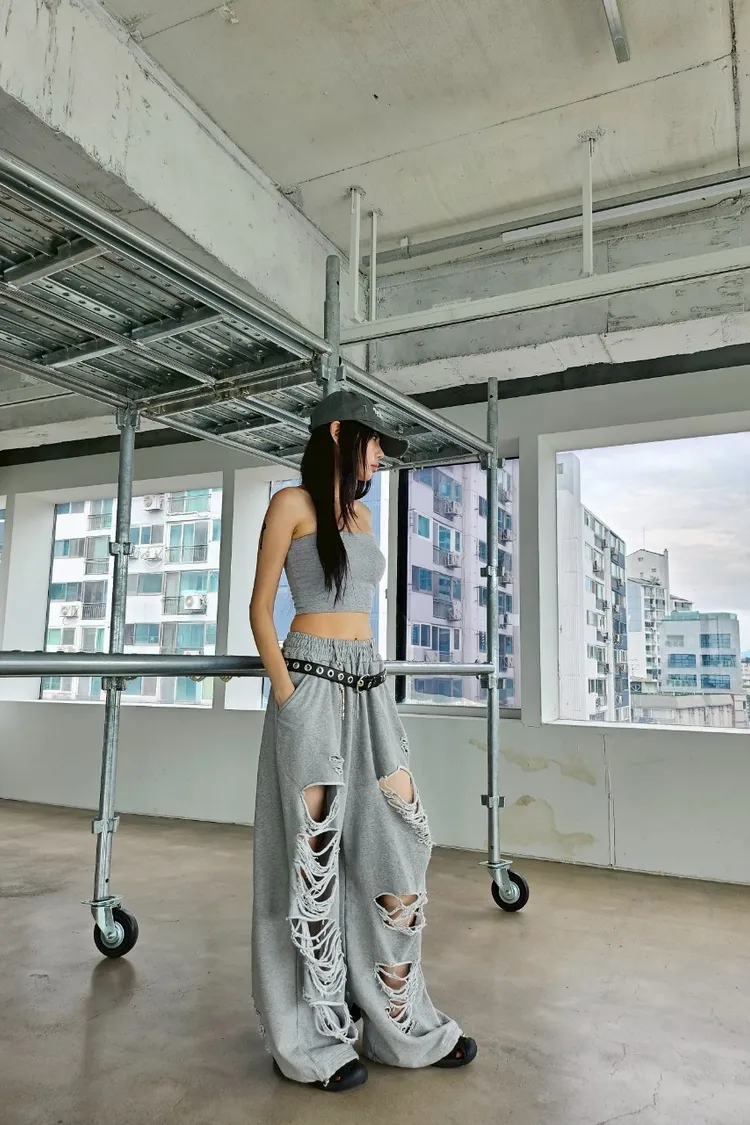 腰部抽繩設計搭配金屬環裝飾,提升整體視覺焦點