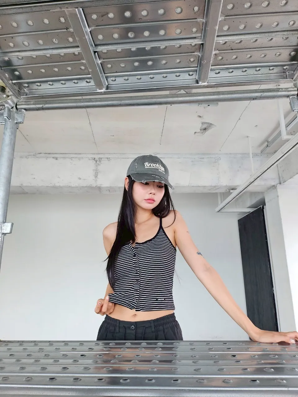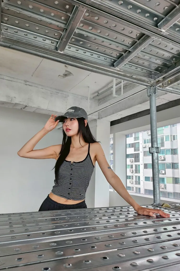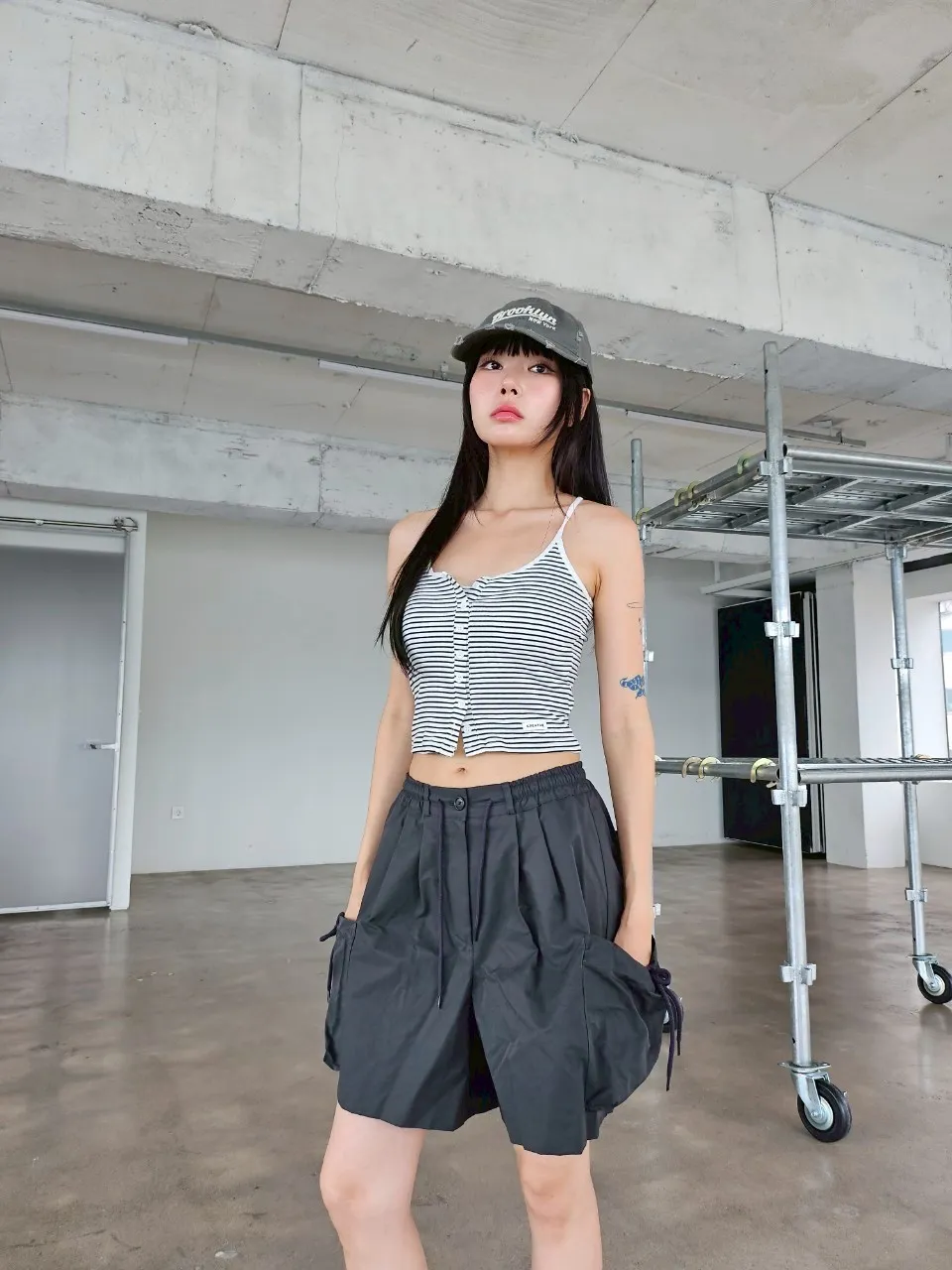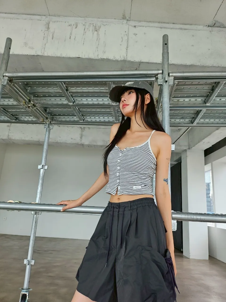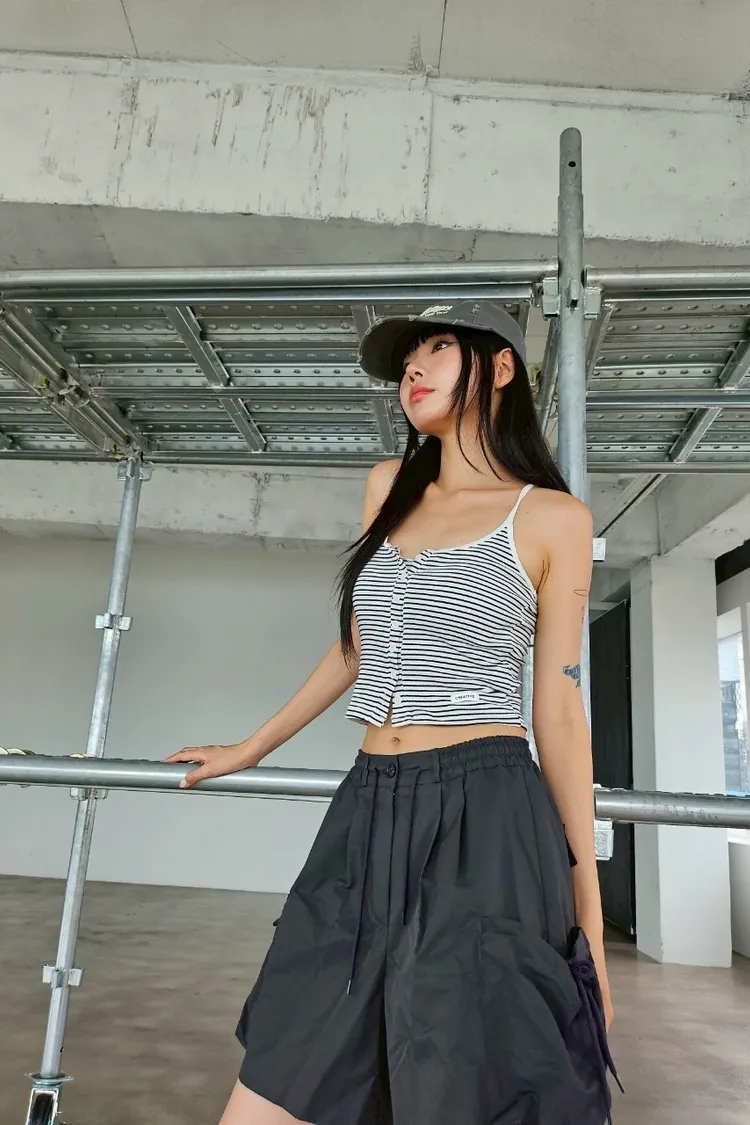 細肩帶與短版剪裁恰好露出迷人腰線,日常穿搭添上若隱若現