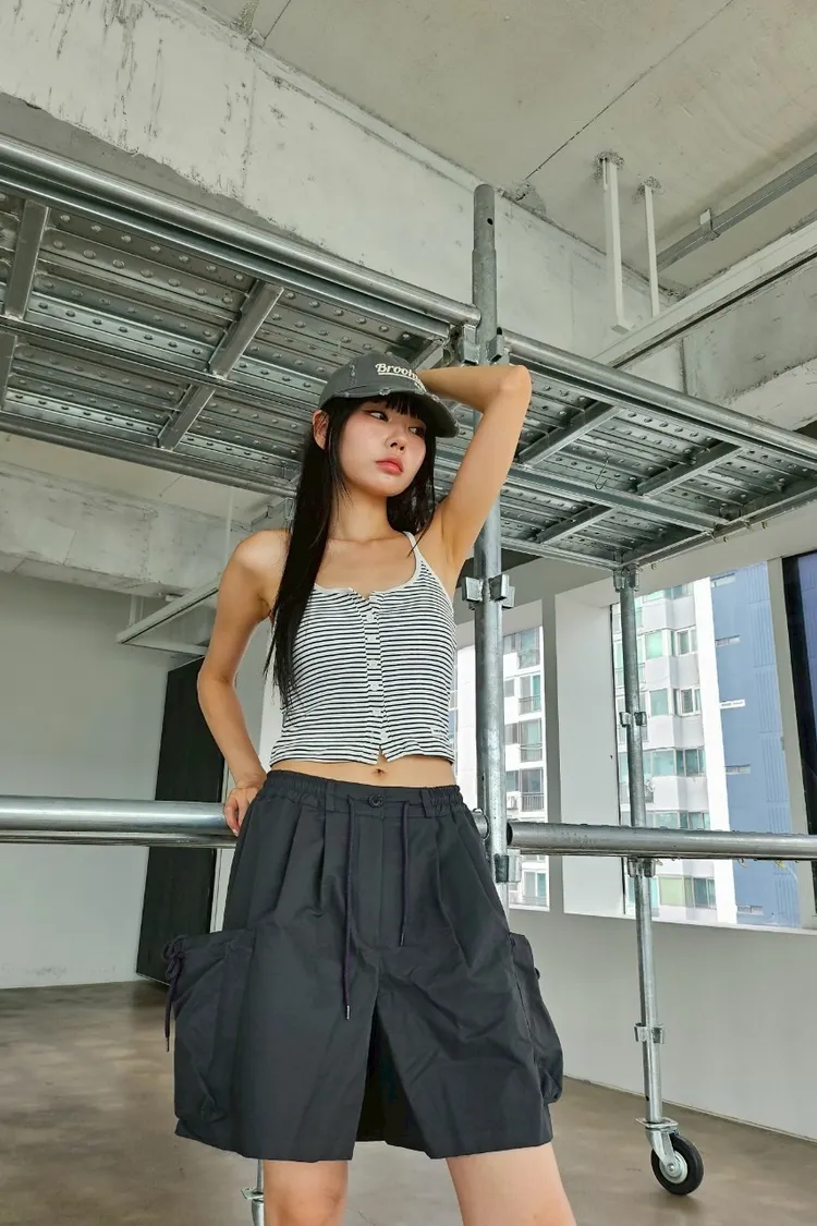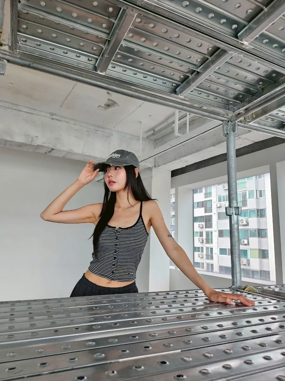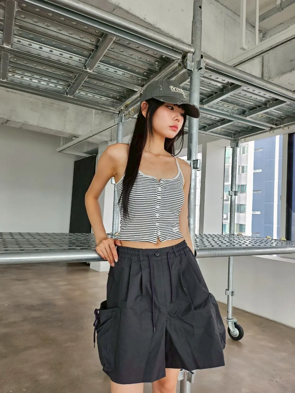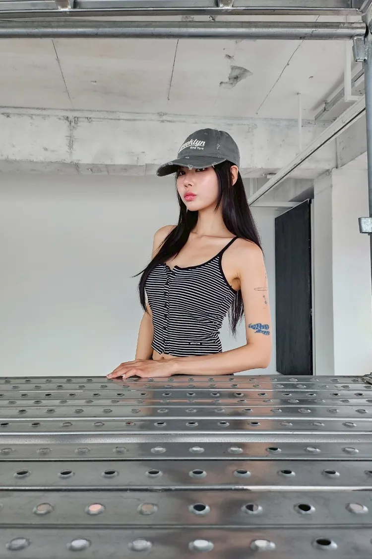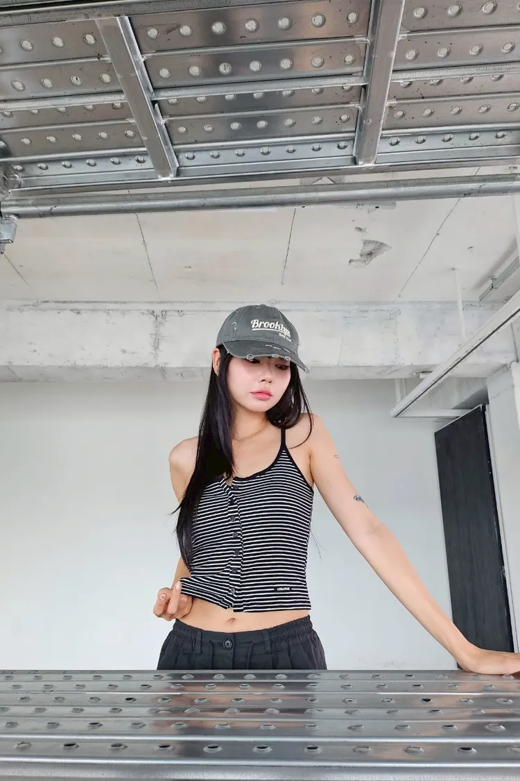 細肩帶與短版剪裁恰好露出迷人腰線,日常穿搭添上若隱若現