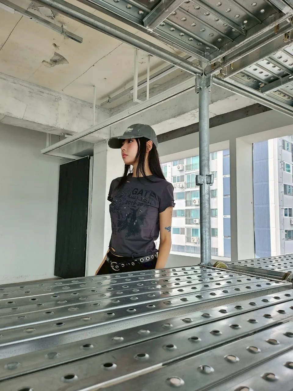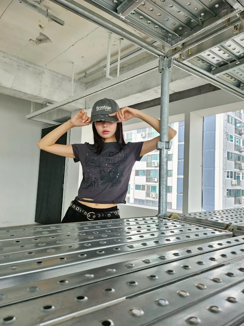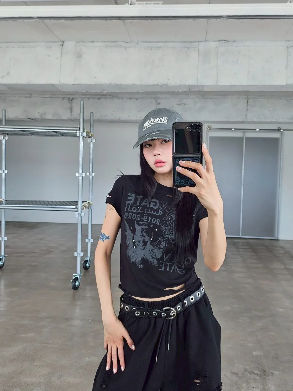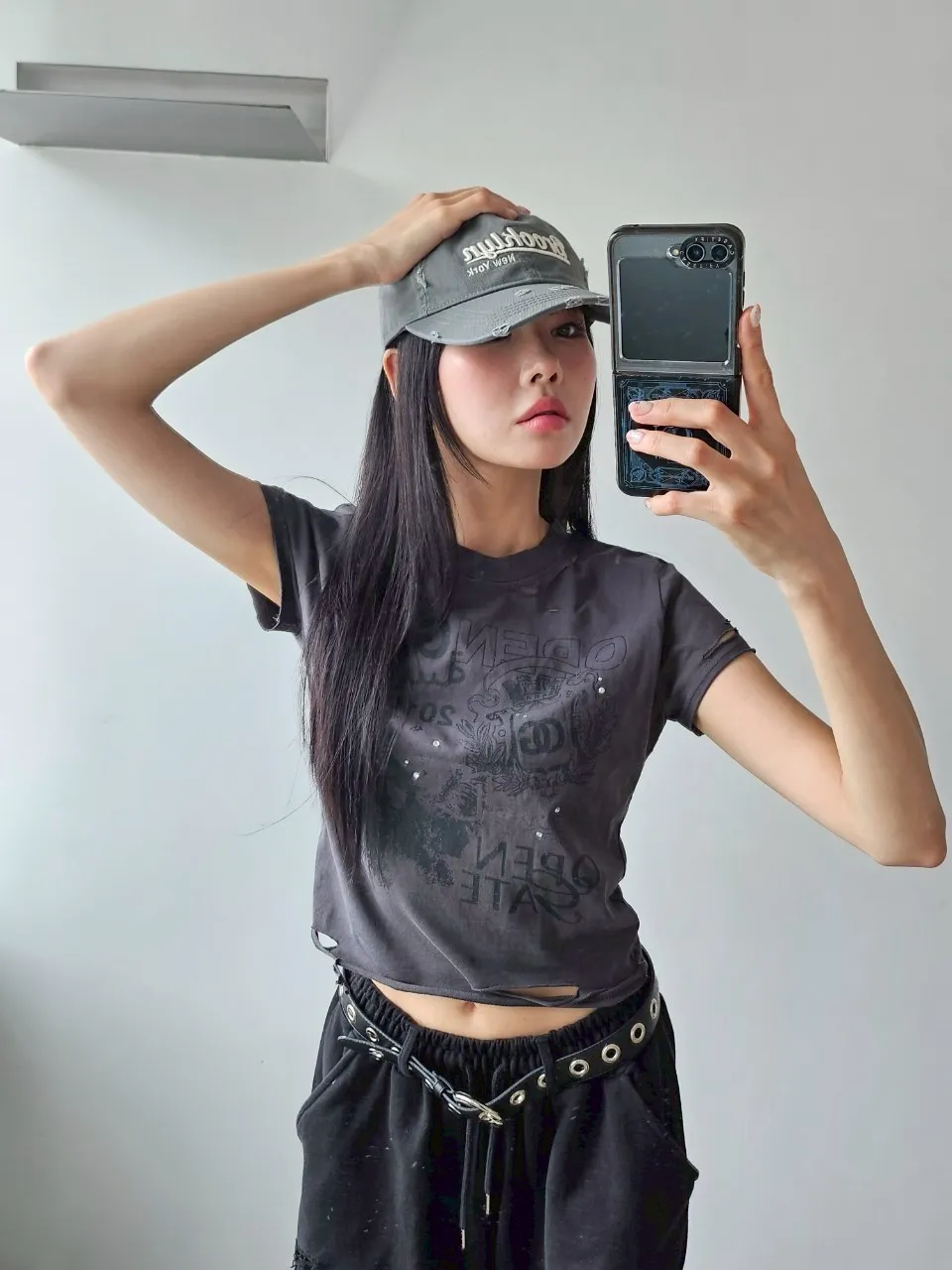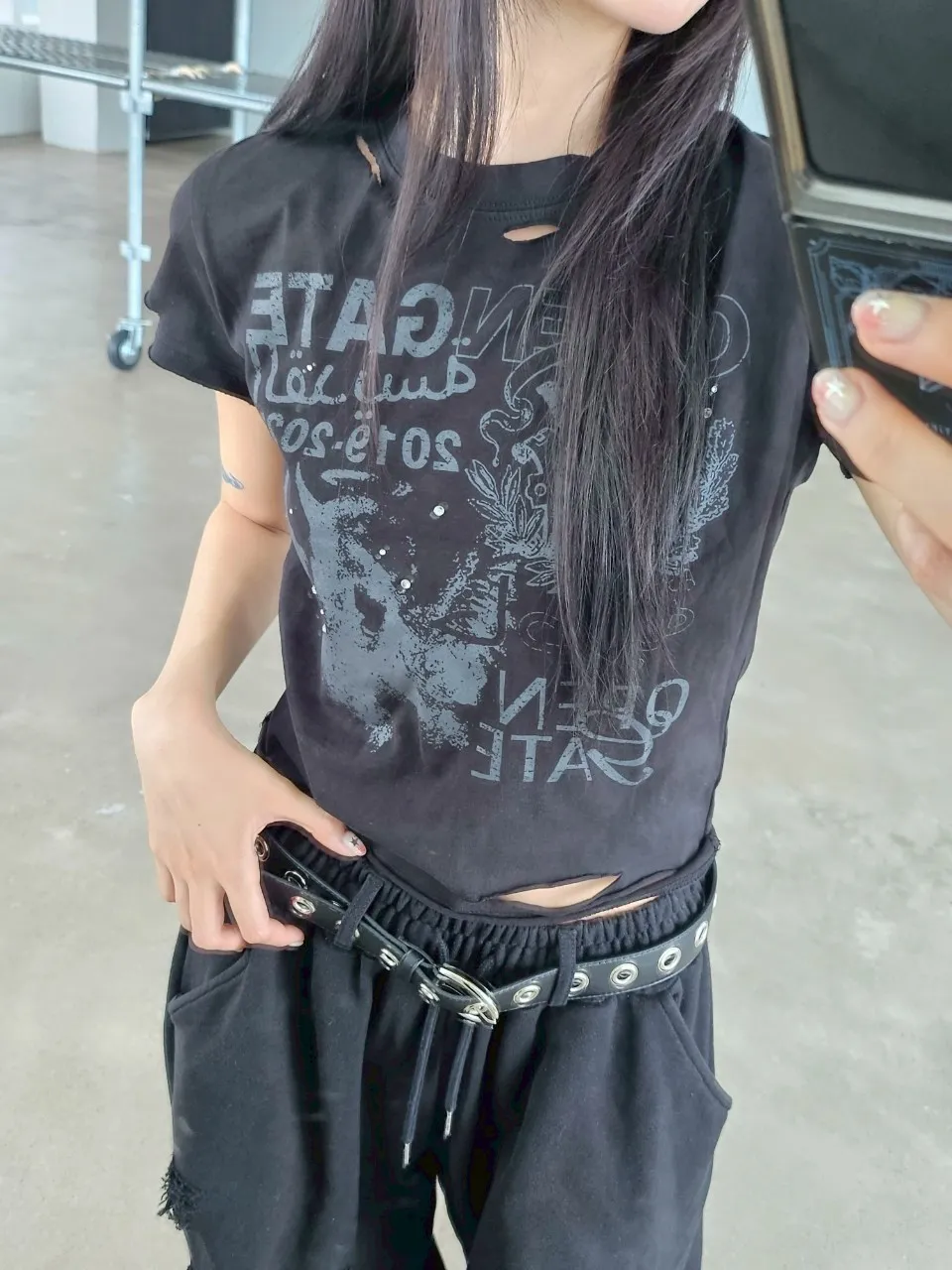 不對稱破壞剪裁,領口、袖口與下擺皆有手工感破洞設計,營造出隨性街頭氛圍